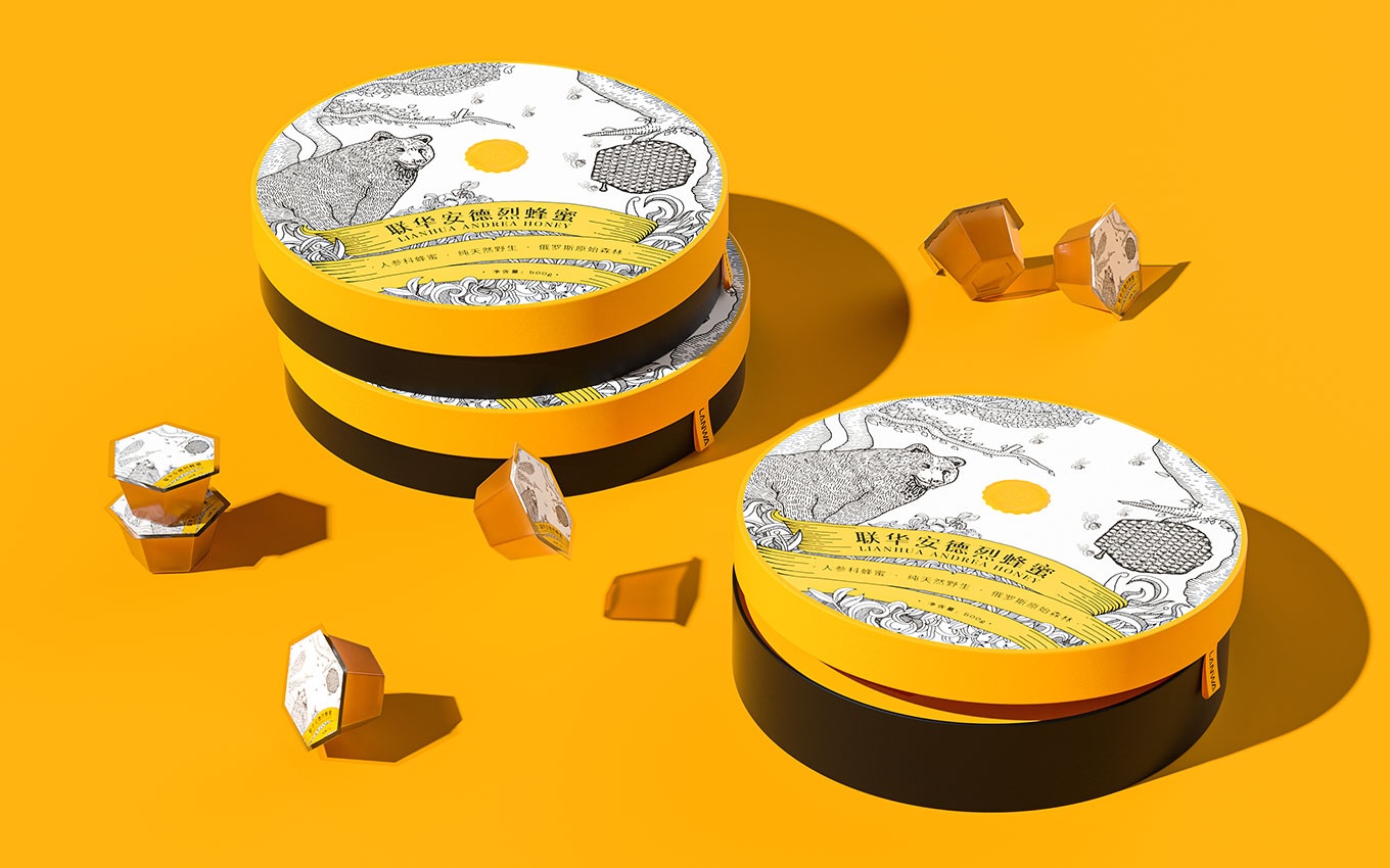 我(wo)們獨具(ju)創意的(de)蜂蜜包裝(zhuang)設(shè)計(ji)與衆不同,與傳(chuan)統的(de)包裝(zhuang)方(fang)式(shi)有(yǒu)所區(qu)别,使産(chan)品(pin)的(de)使用(yong)體(ti)驗(yàn)更加(jia)人(ren)性化。黑色與黃色的(de)搭配(pei)巧妙地突出了(le)蜂蜜産(chan)品(pin)的(de)行業屬性,給人(ren)以(yi)強烈的(de)視覺沖擊力(li),讓人(ren)一(yi)眼就能(néng)辨認出産(chan)品(pin)所屬的(de)行業。